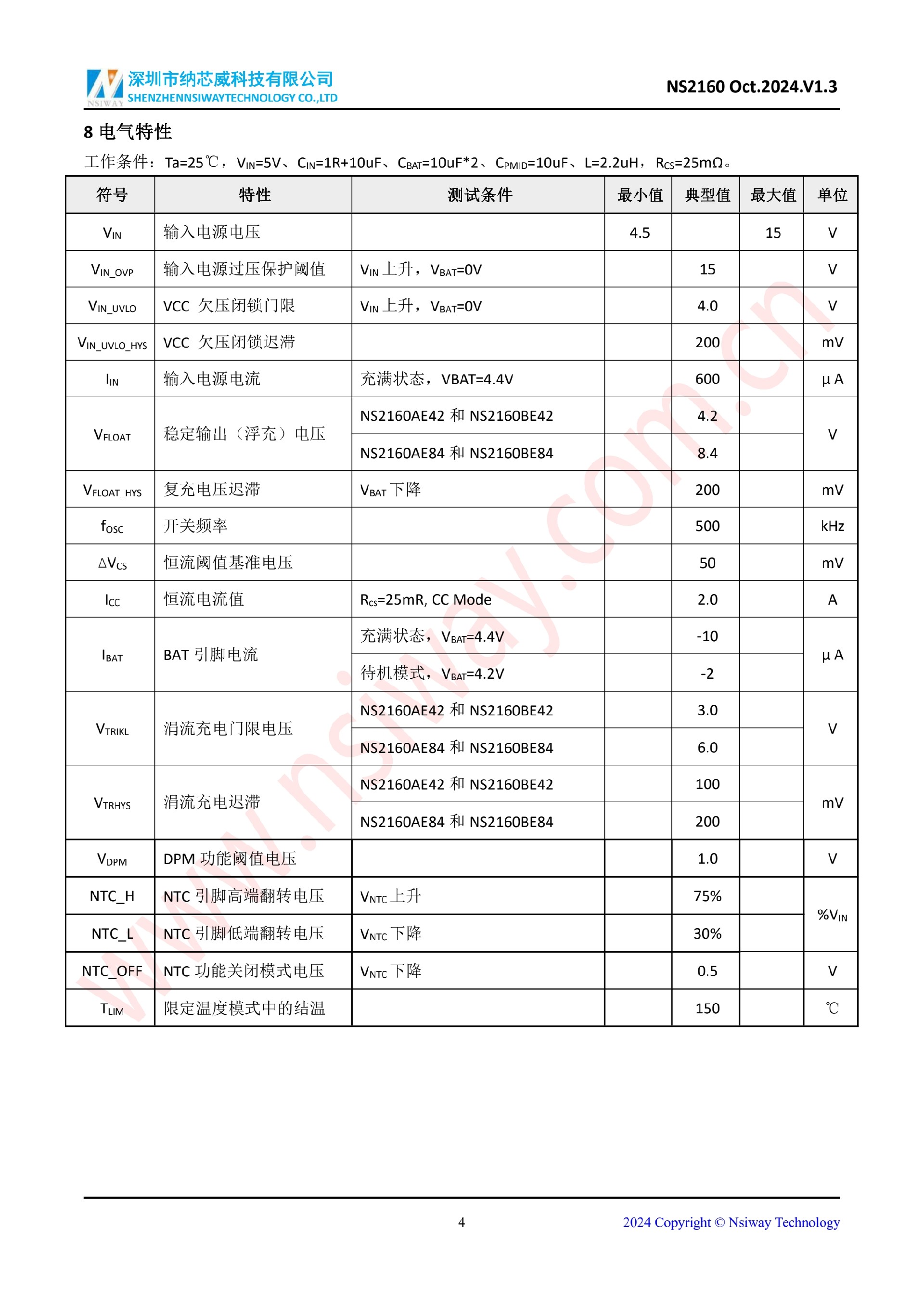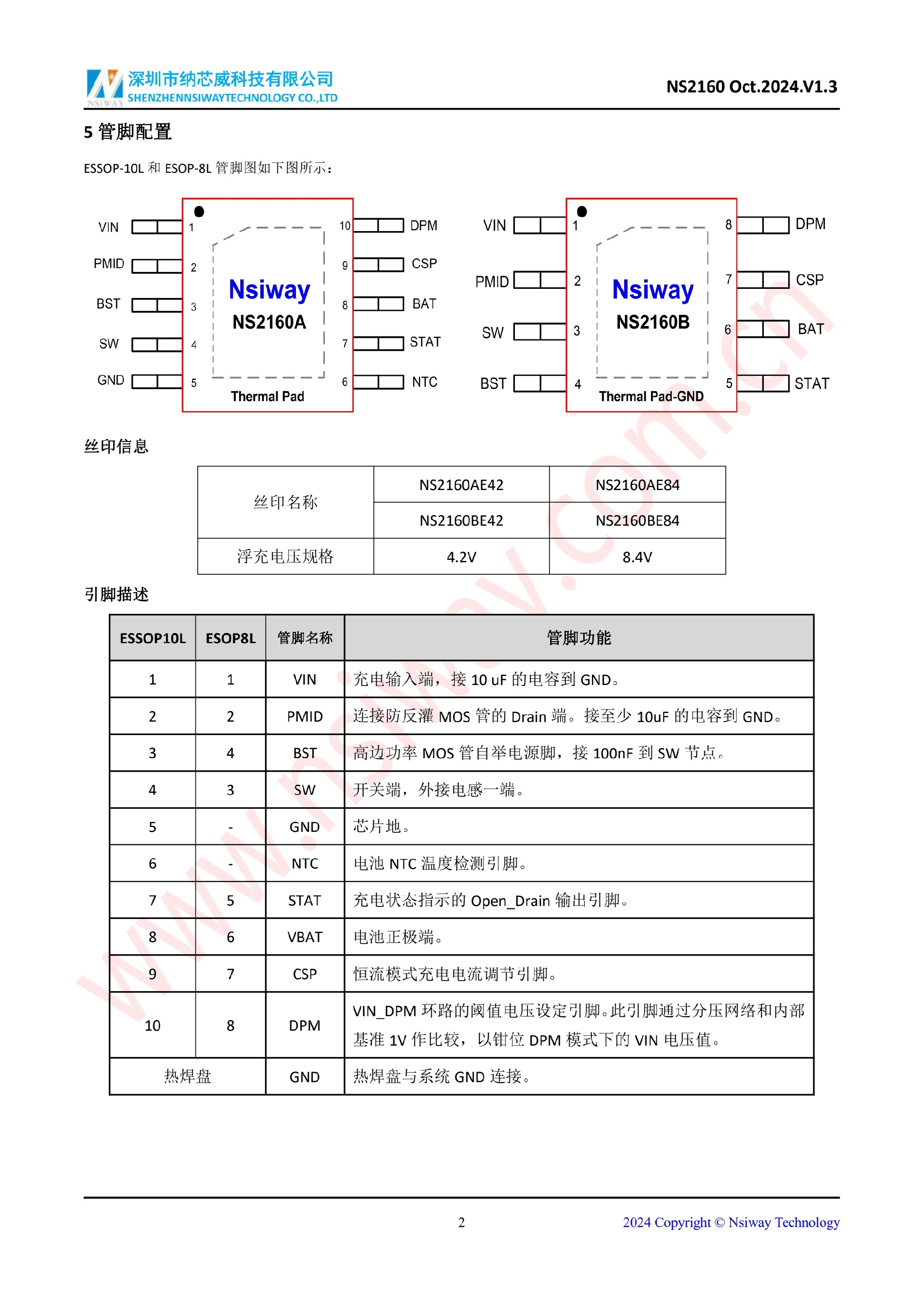 NS2160 同步開關型降壓鋰電池充電管理 IC