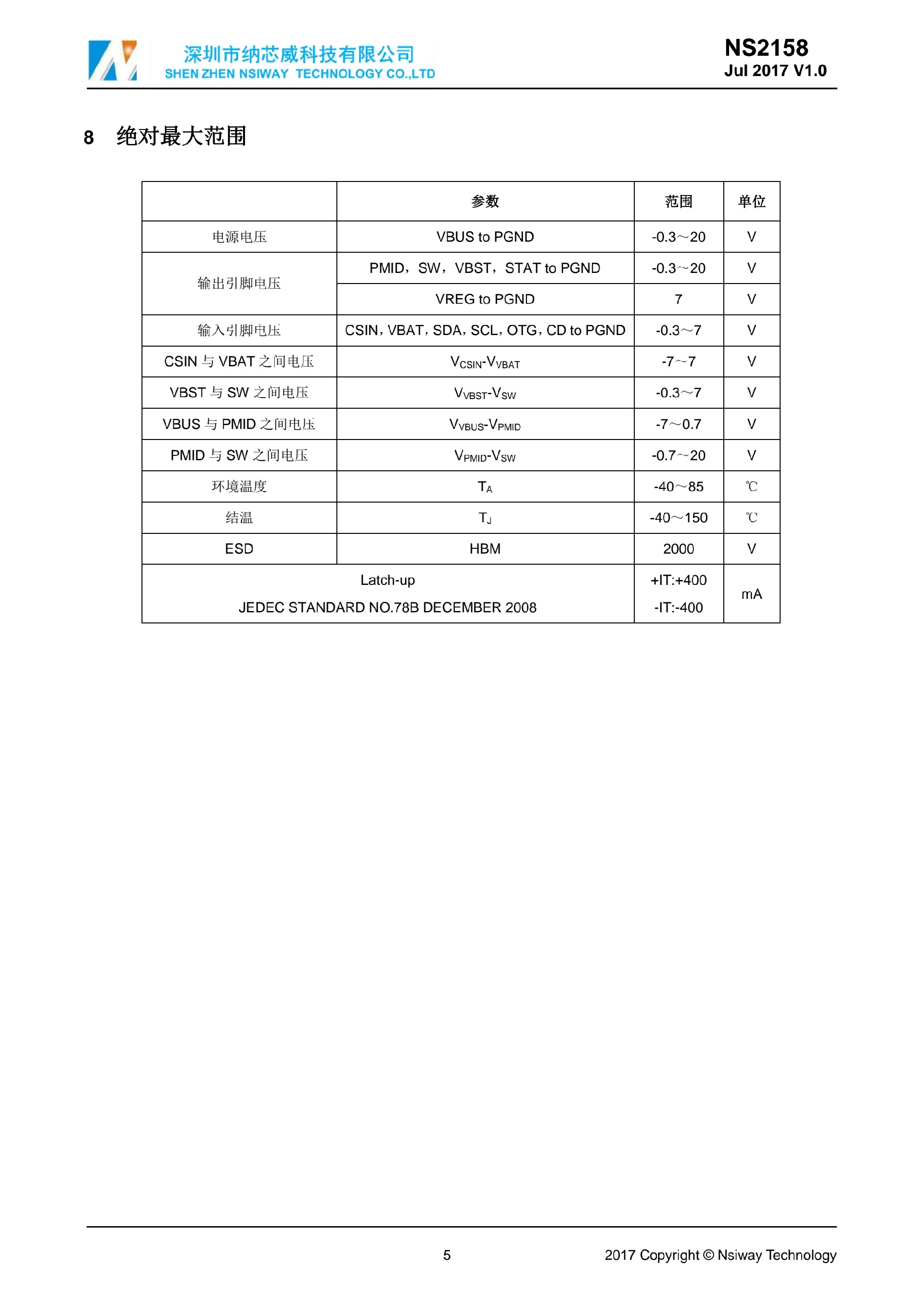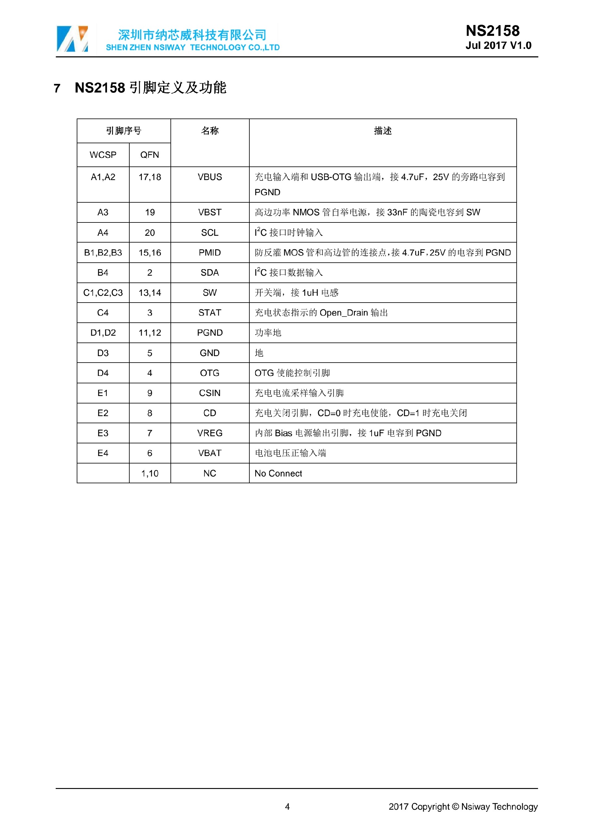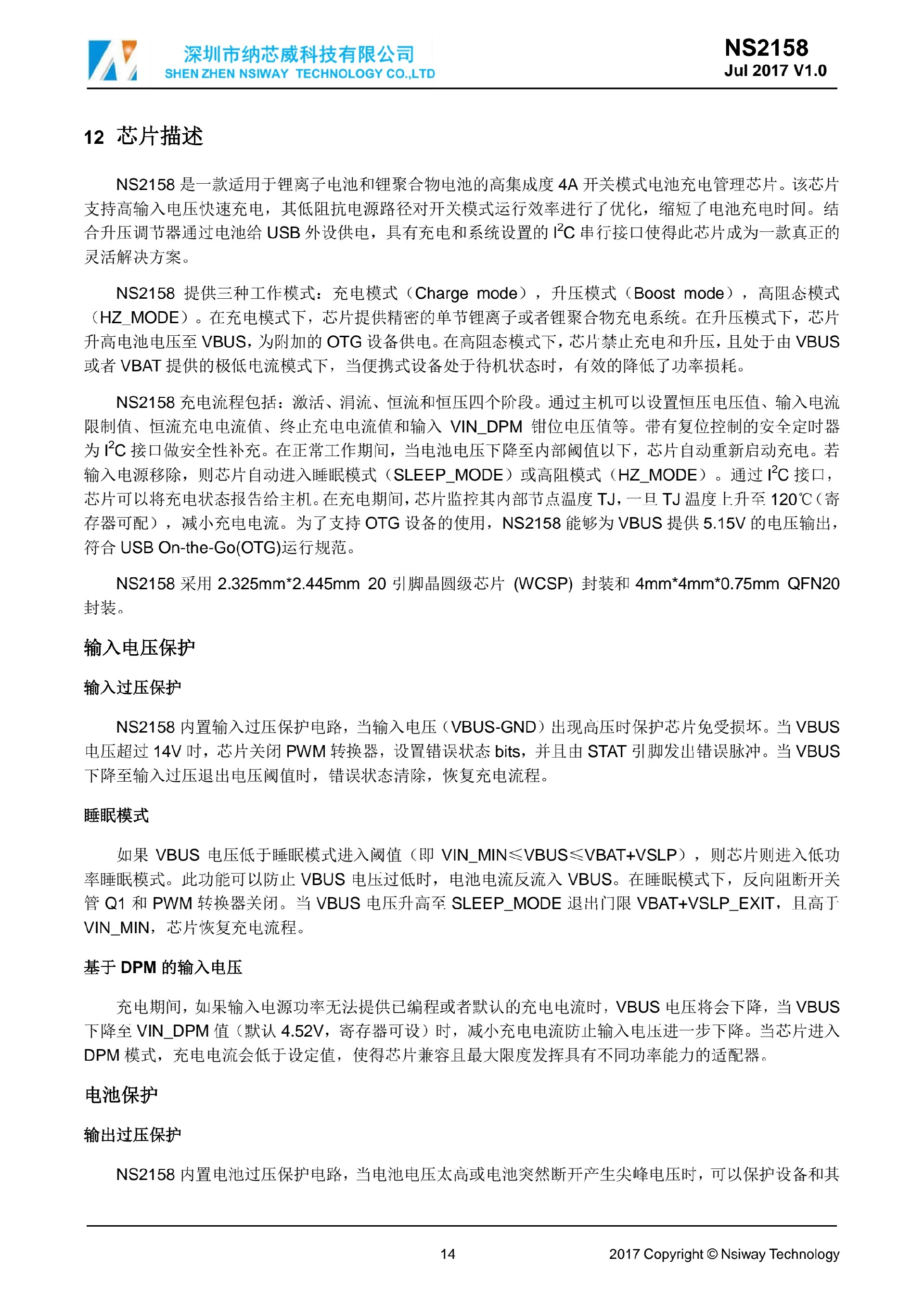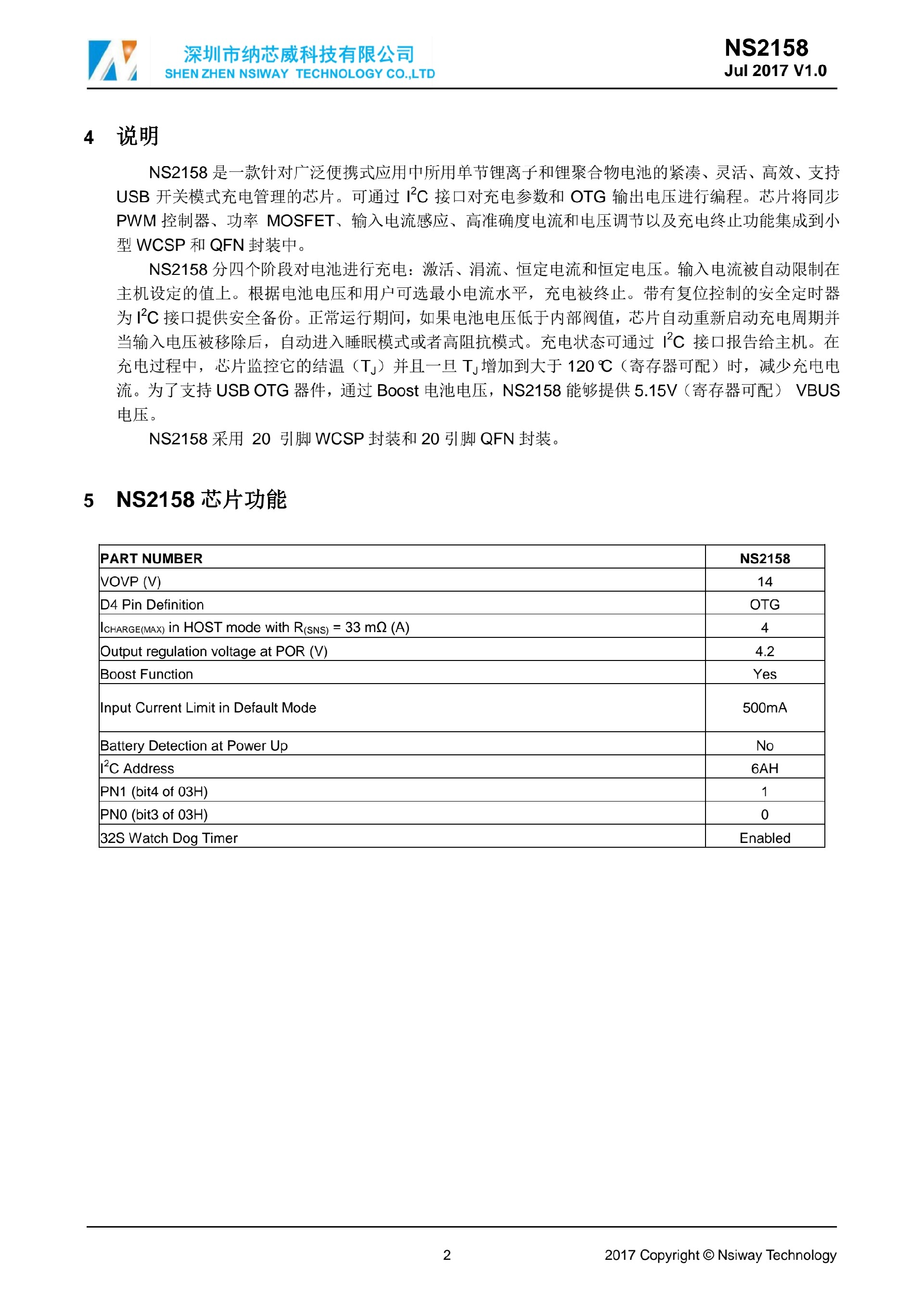 NS2158 I2C控制單節4A快速充電器,支持USB On-The-Go升壓模式