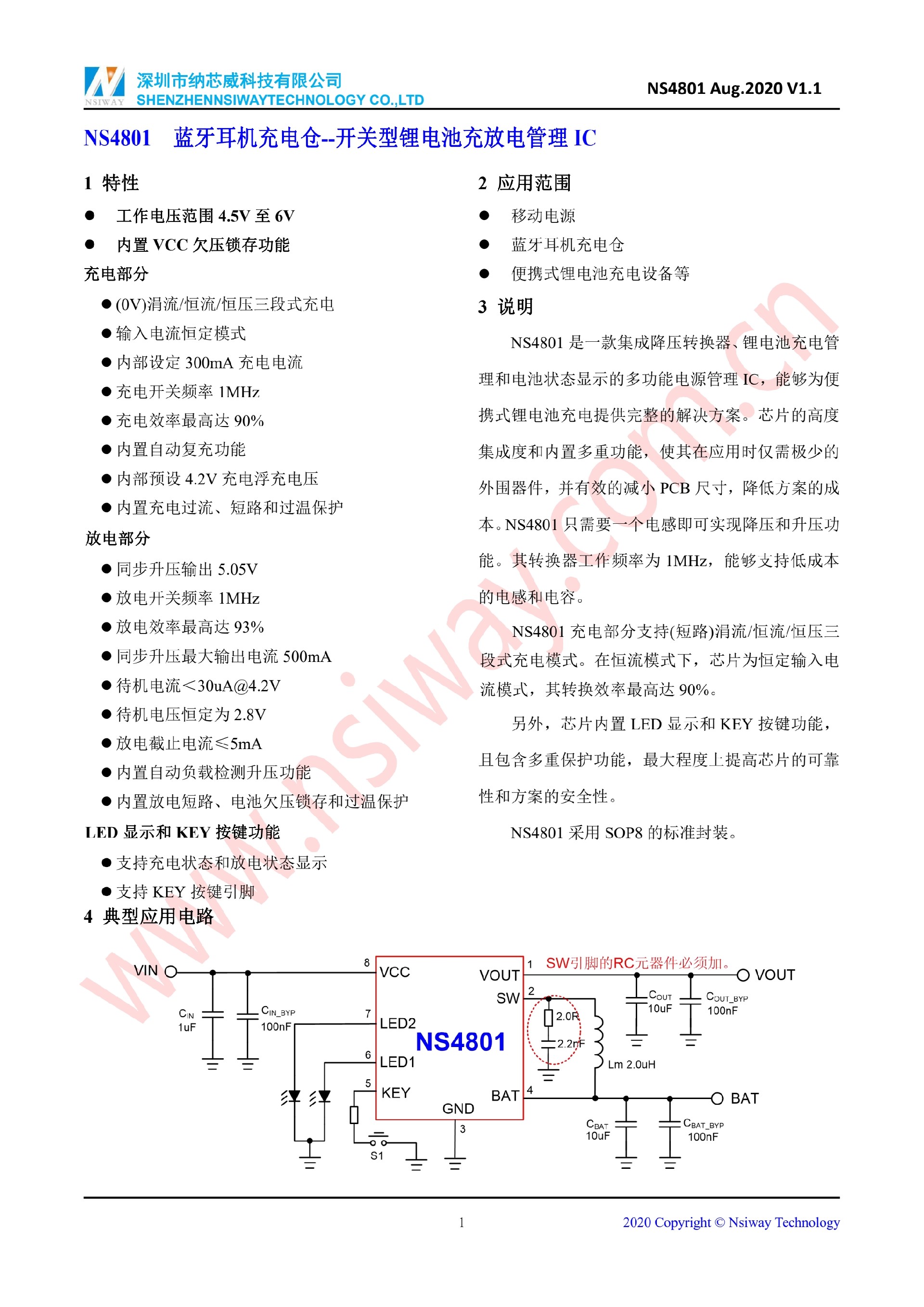 NS4801 藍牙耳機充電倉-鋰電池充放電管理IC(PWM)