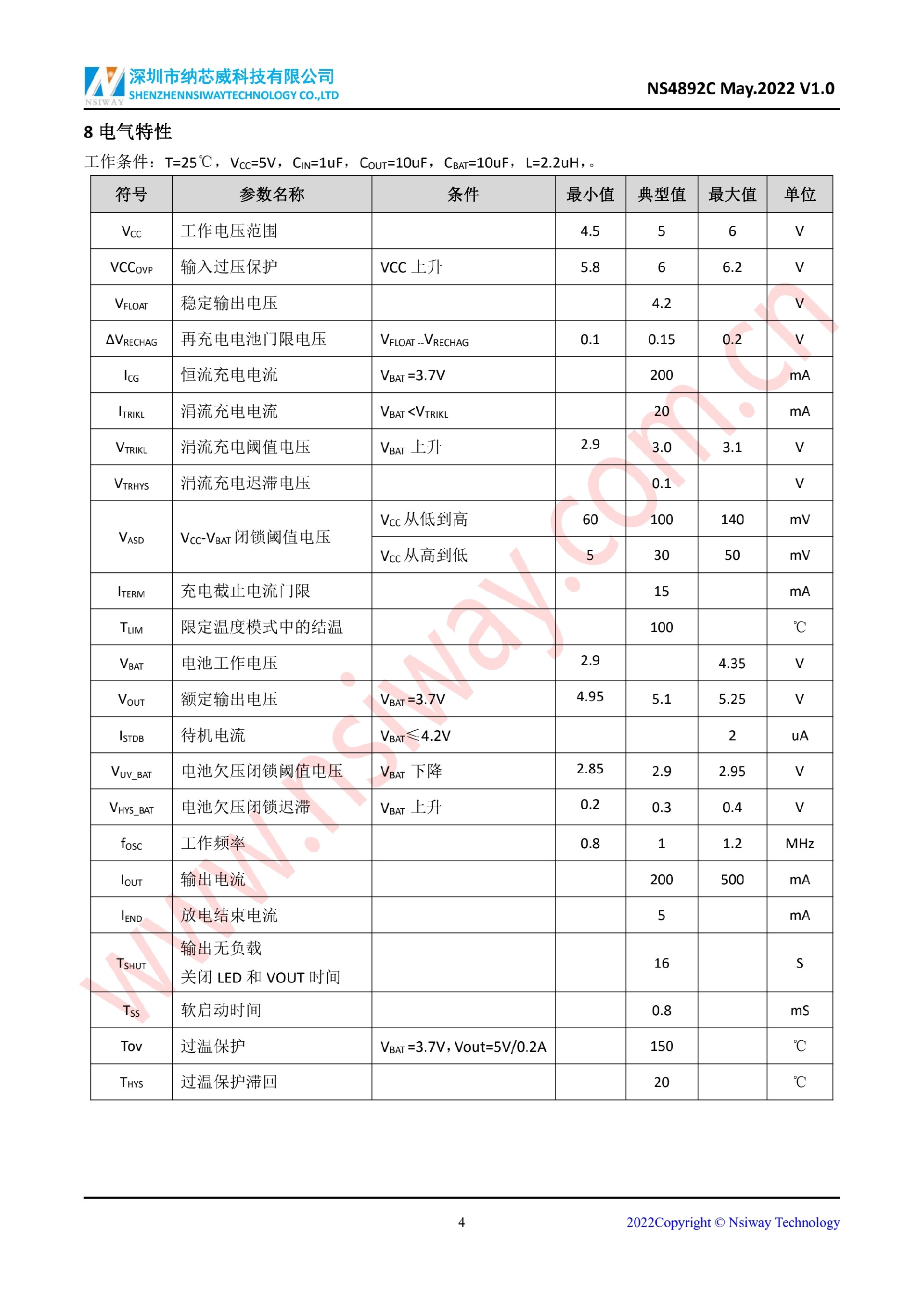 NS4892C 200mA-線性鋰電池充放電管理 IC