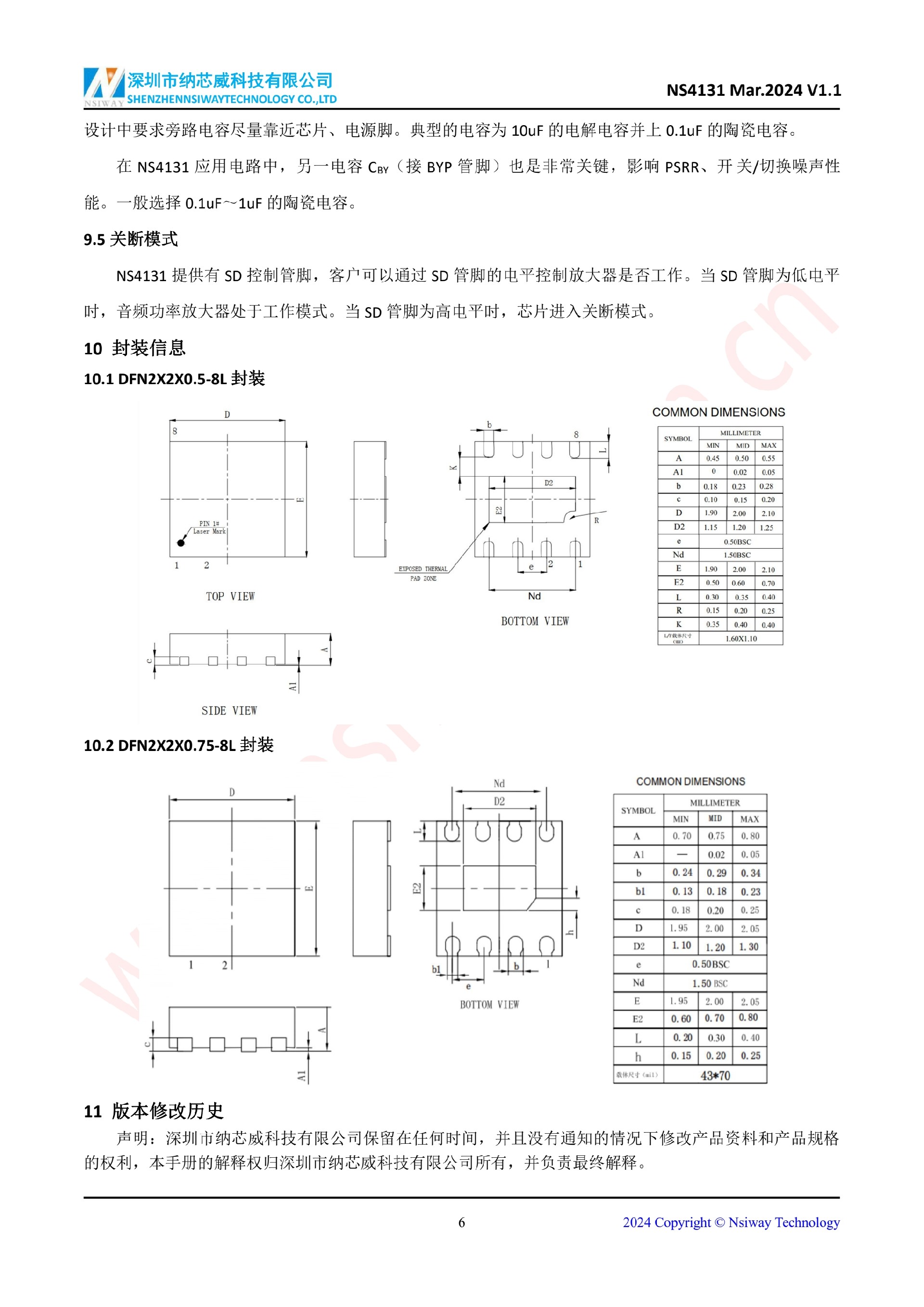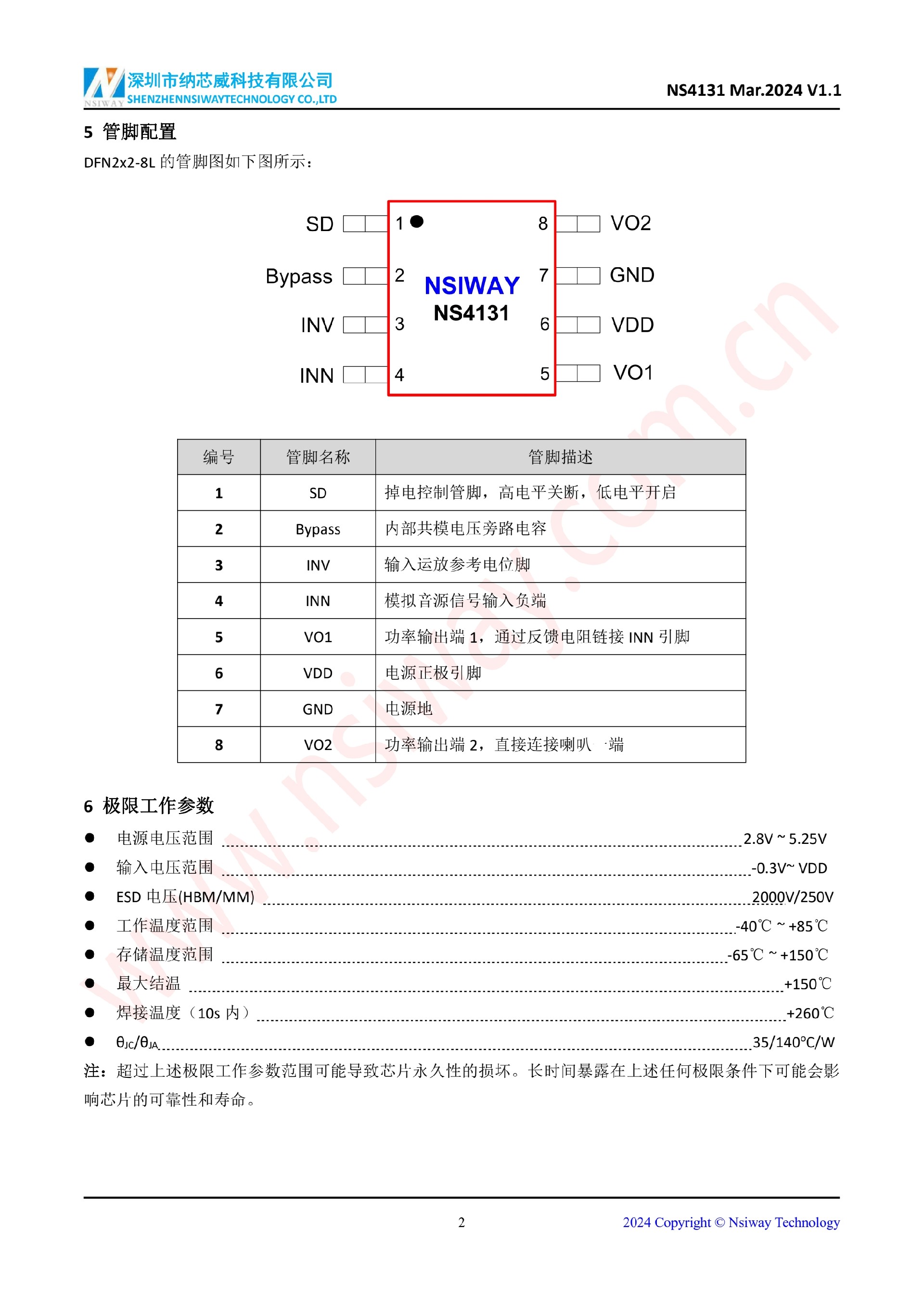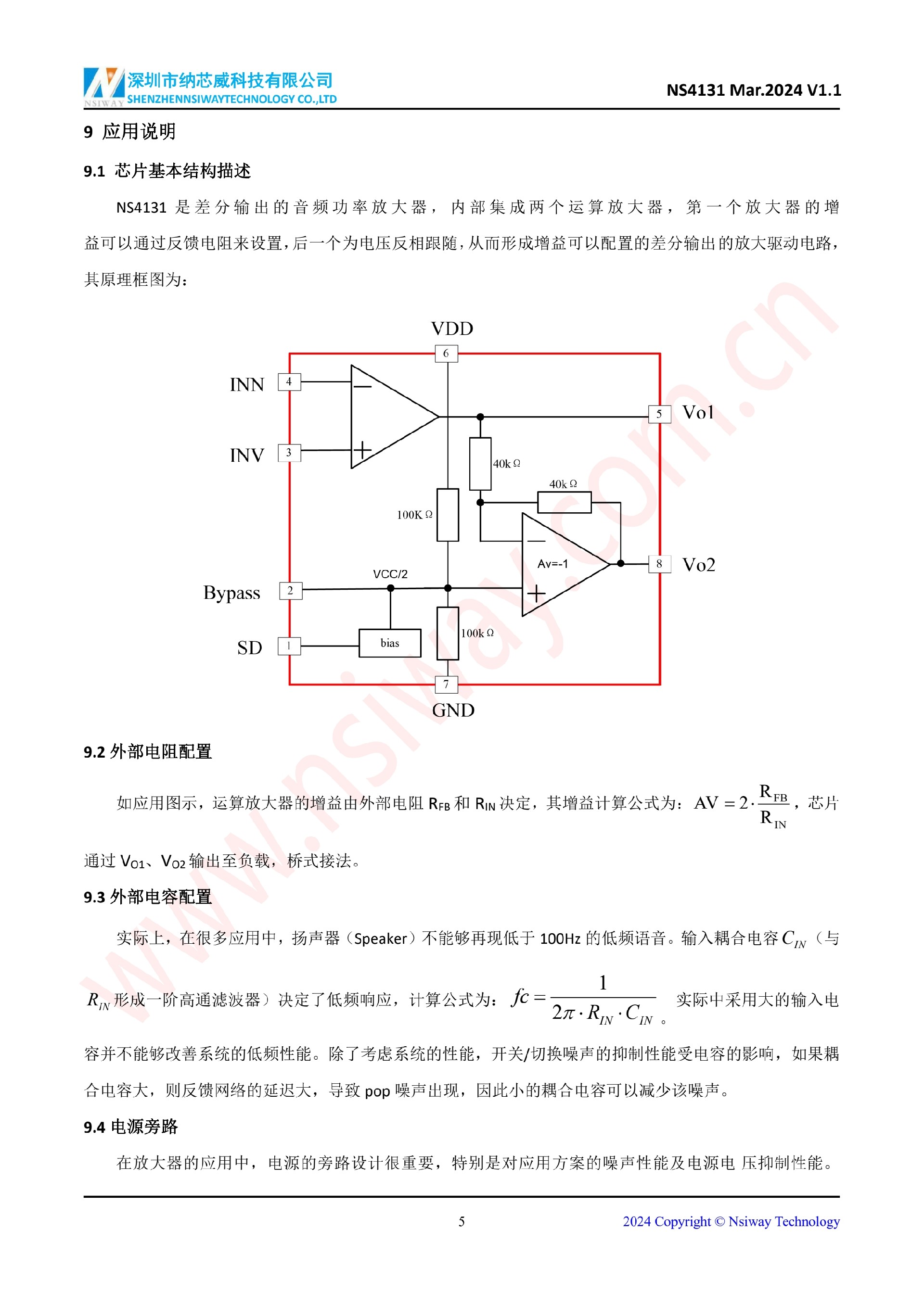 NS4131 2.4W 單聲道 AB 類音頻功率放大器