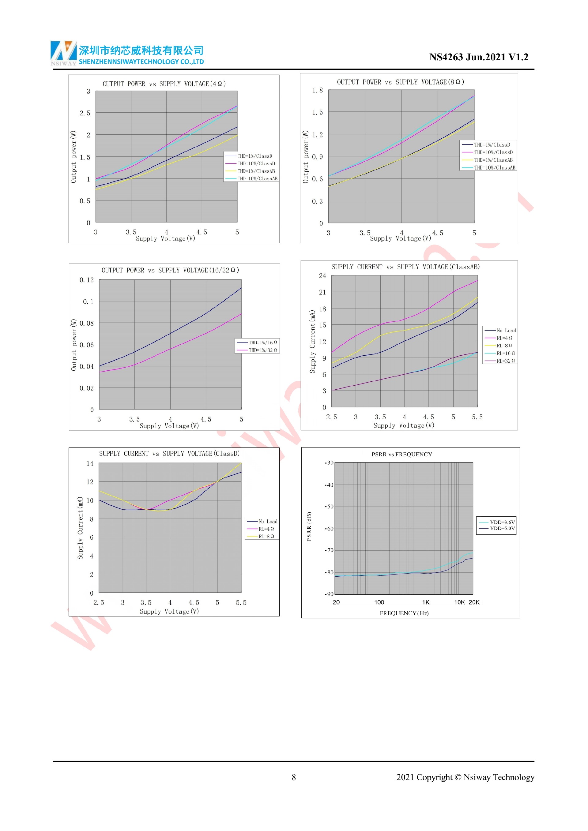 NS4263B 3.1Wx2 雙聲道 AB/D 類雙模音頻功率放大器附加耳機模式