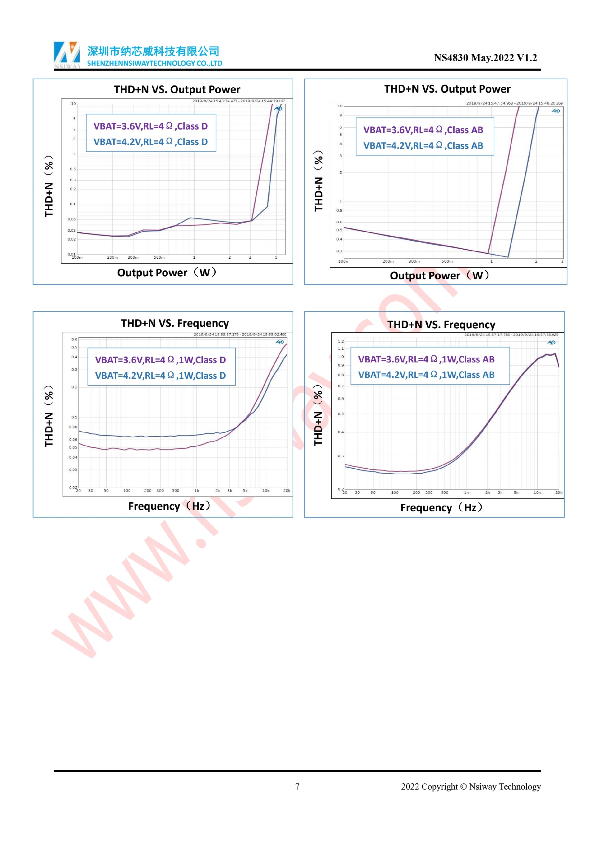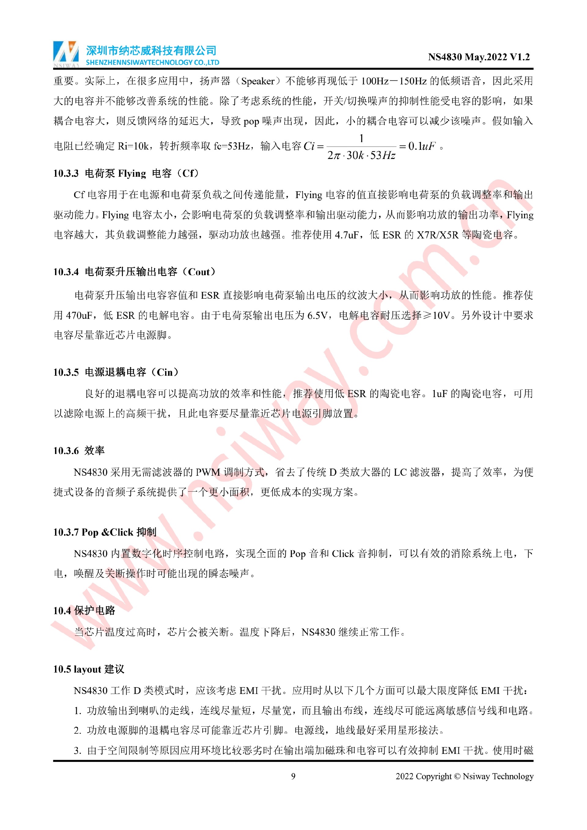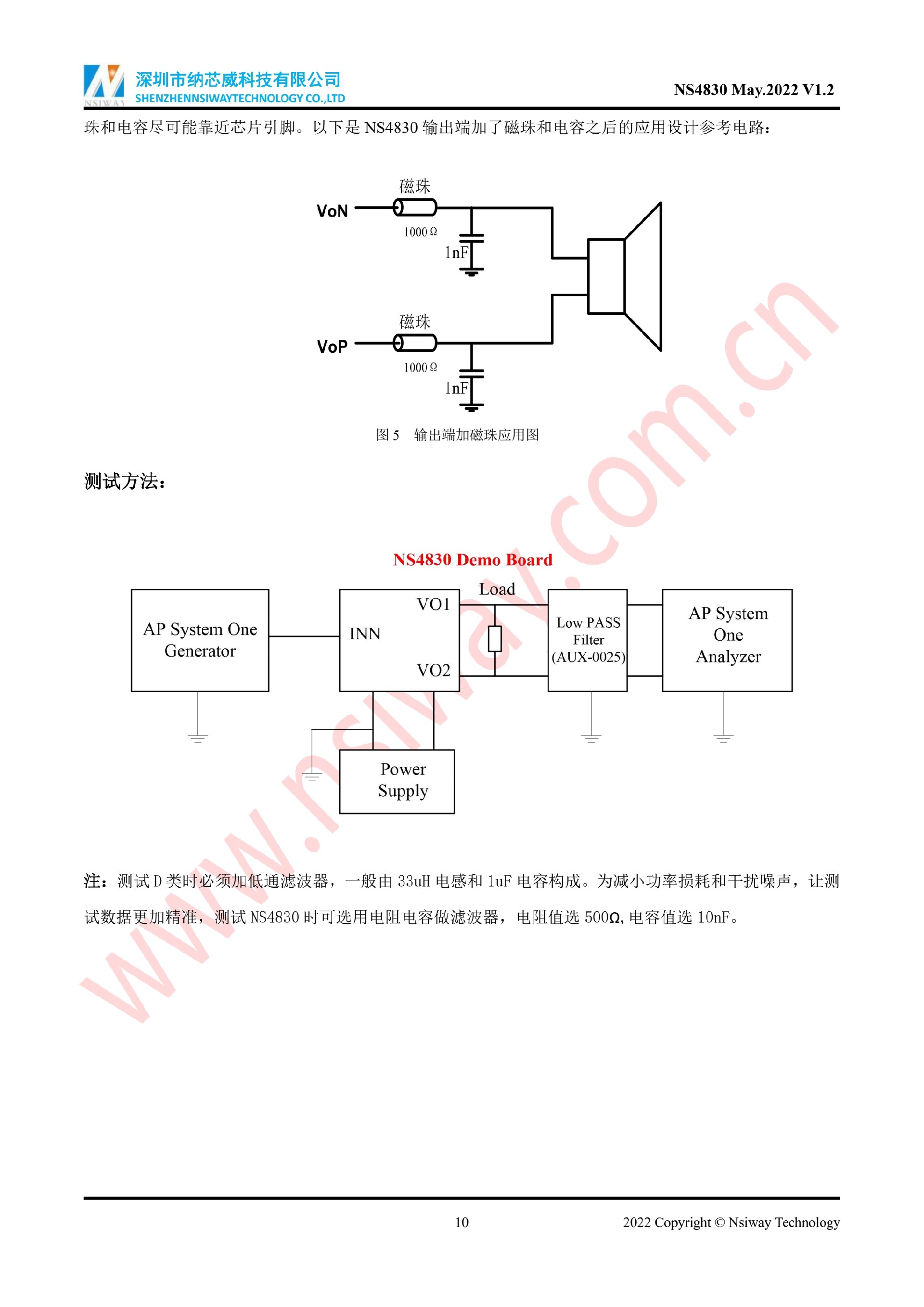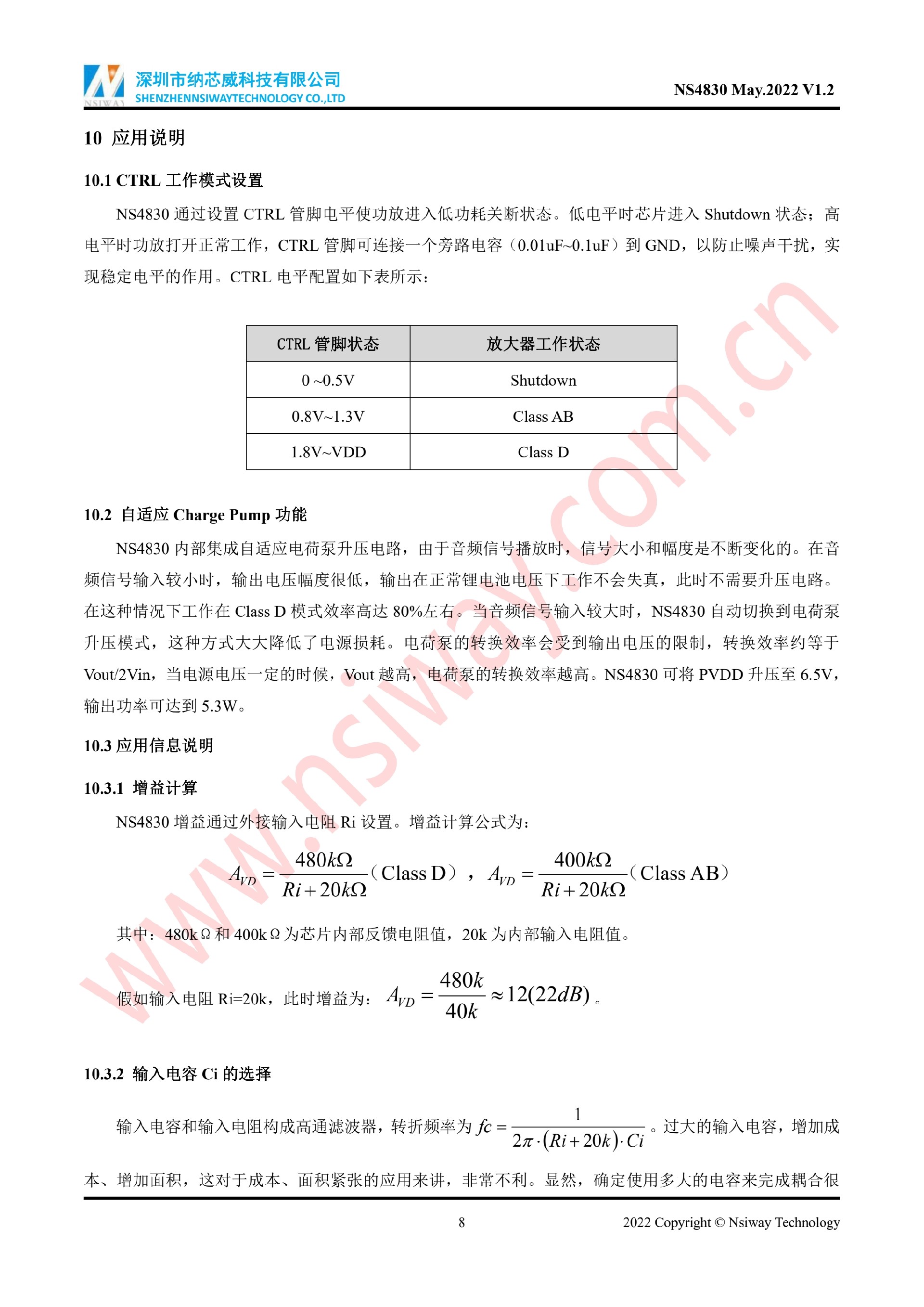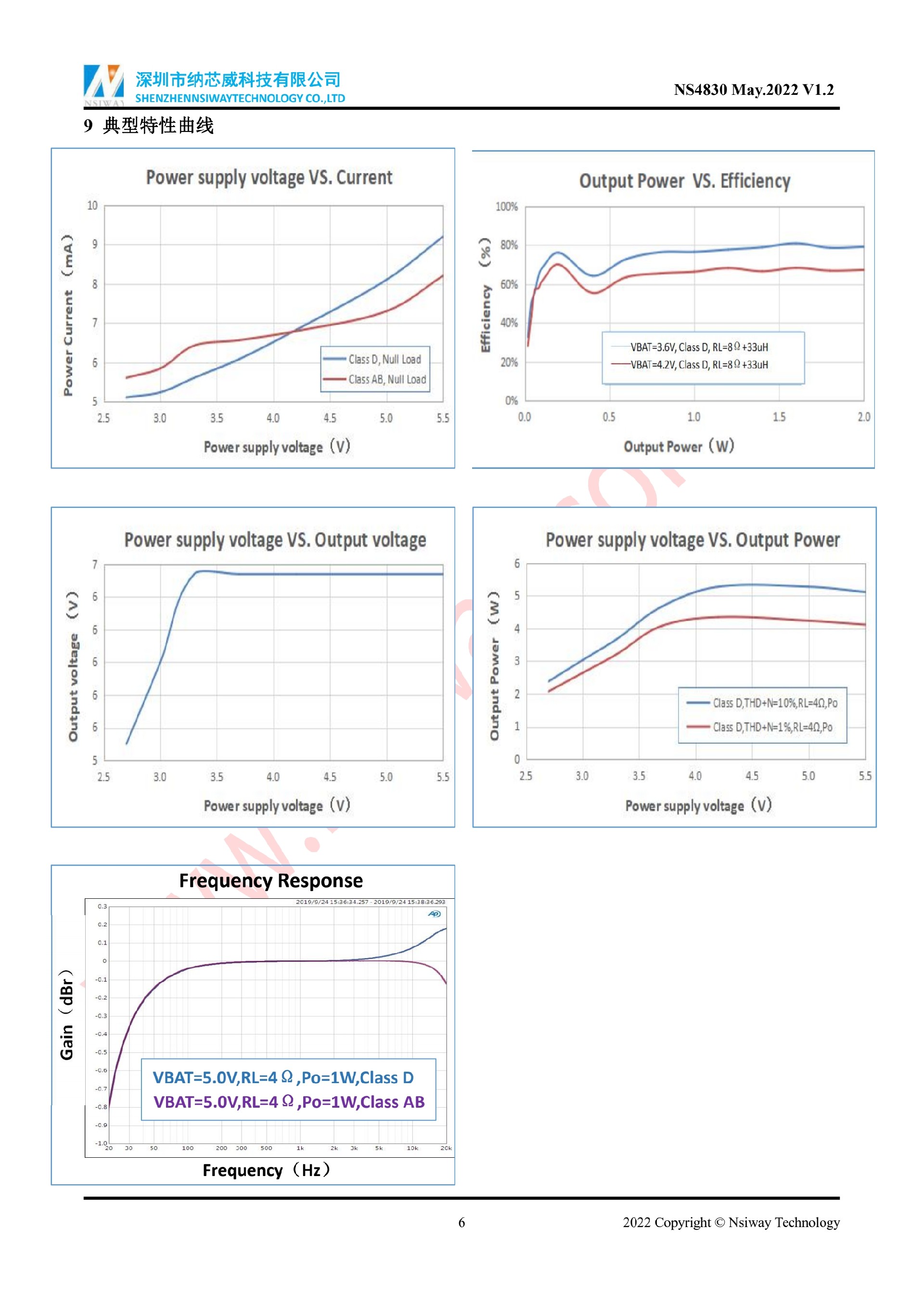 NS4830 5.3W 單聲道AB/D類音頻功率放大器附加自適應Charge Pump升壓模塊(eSOP-10)
