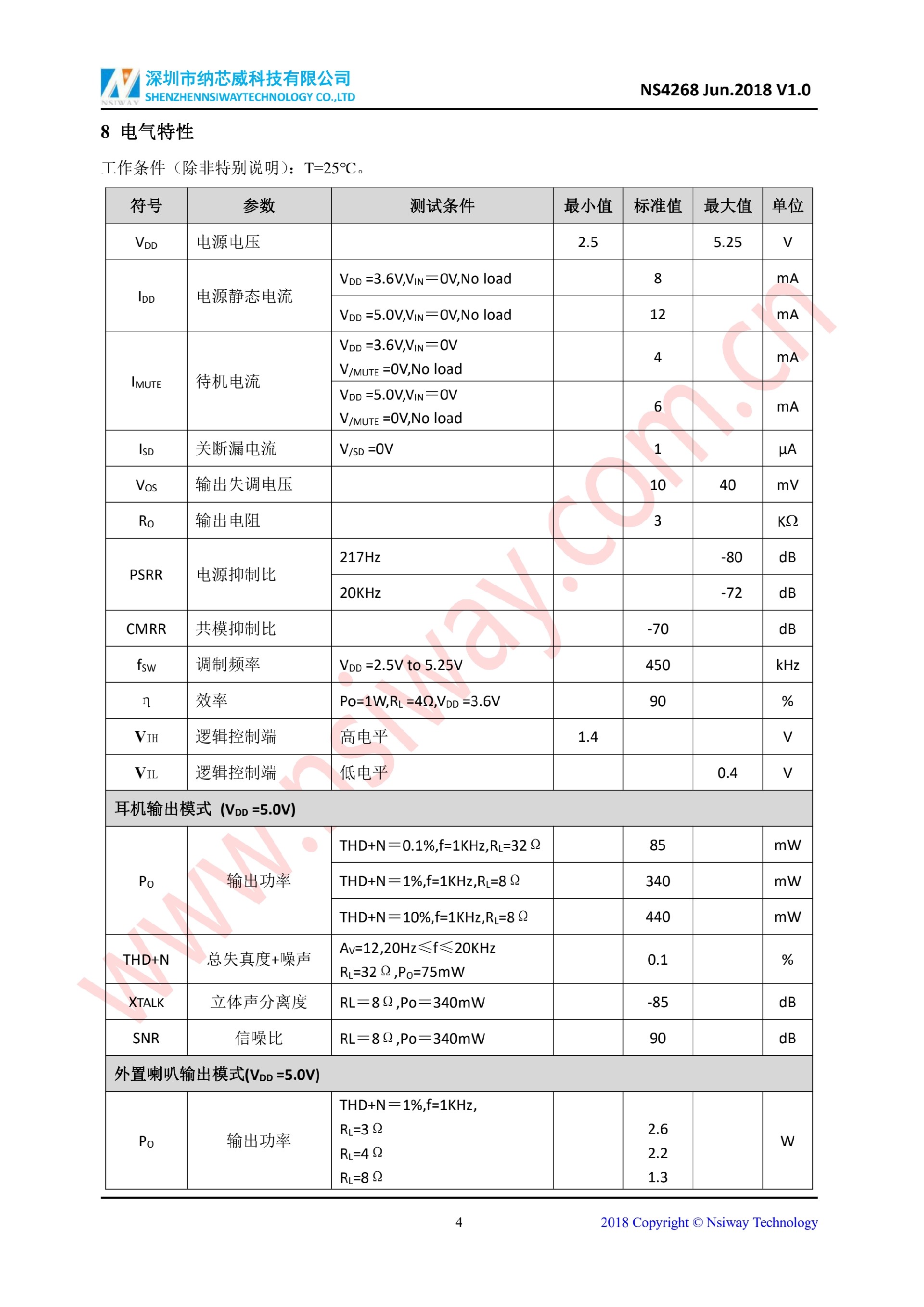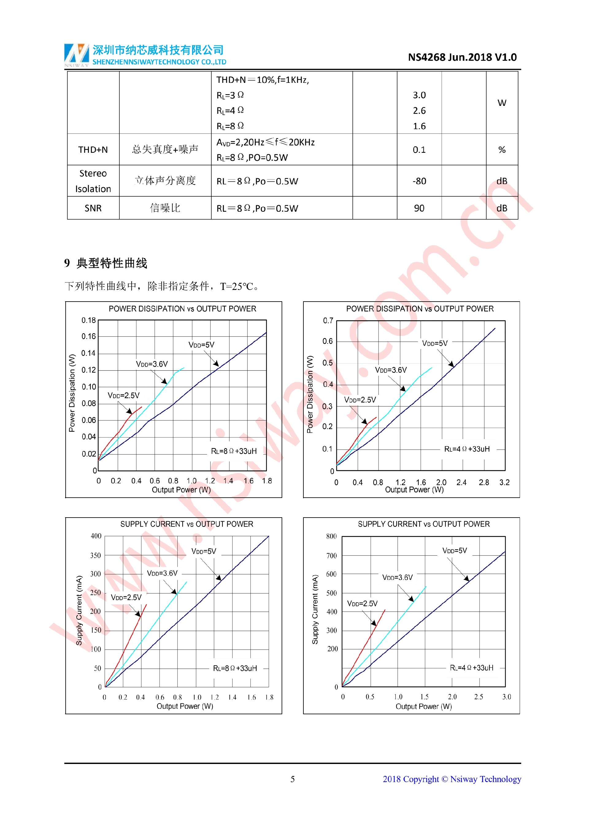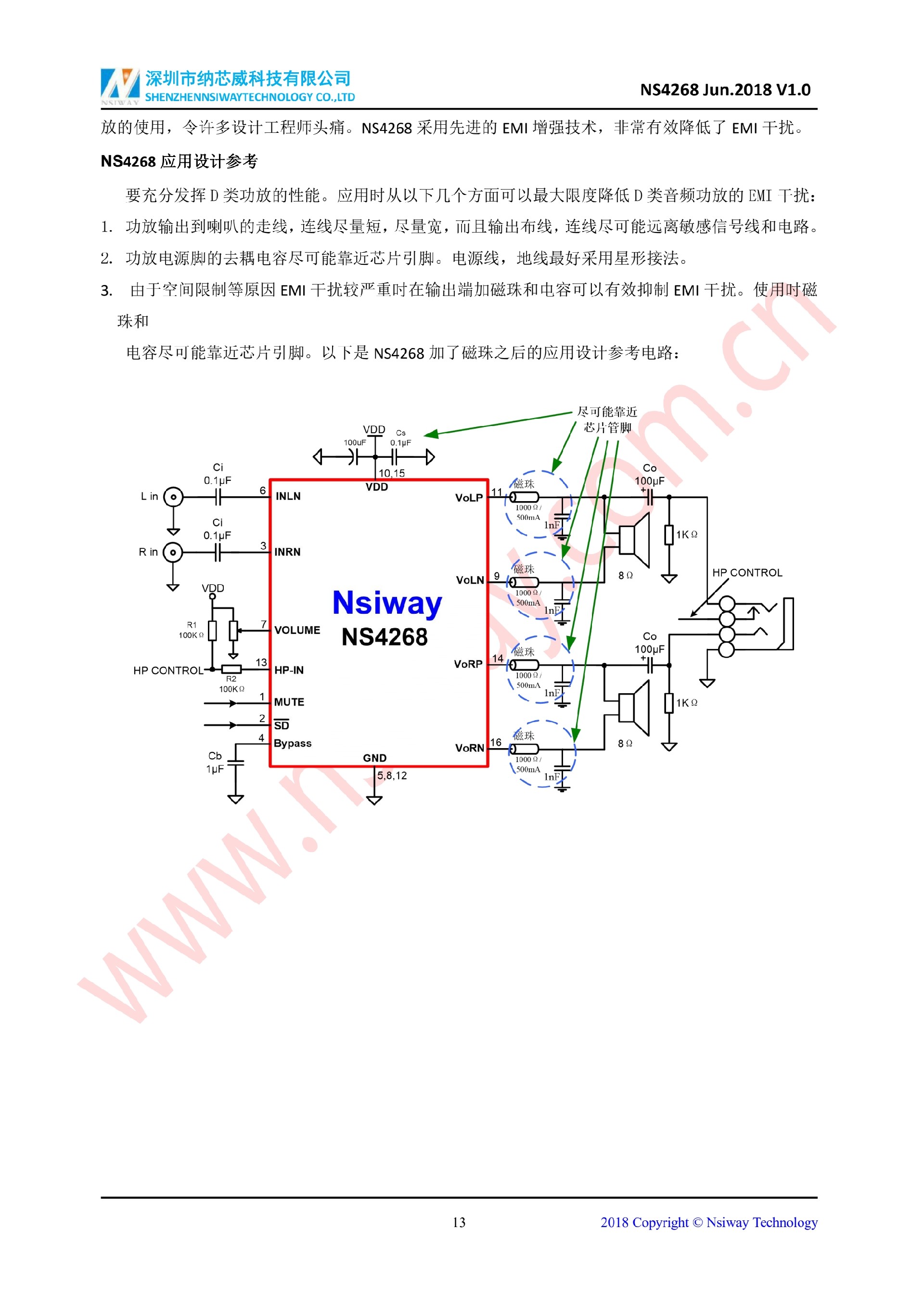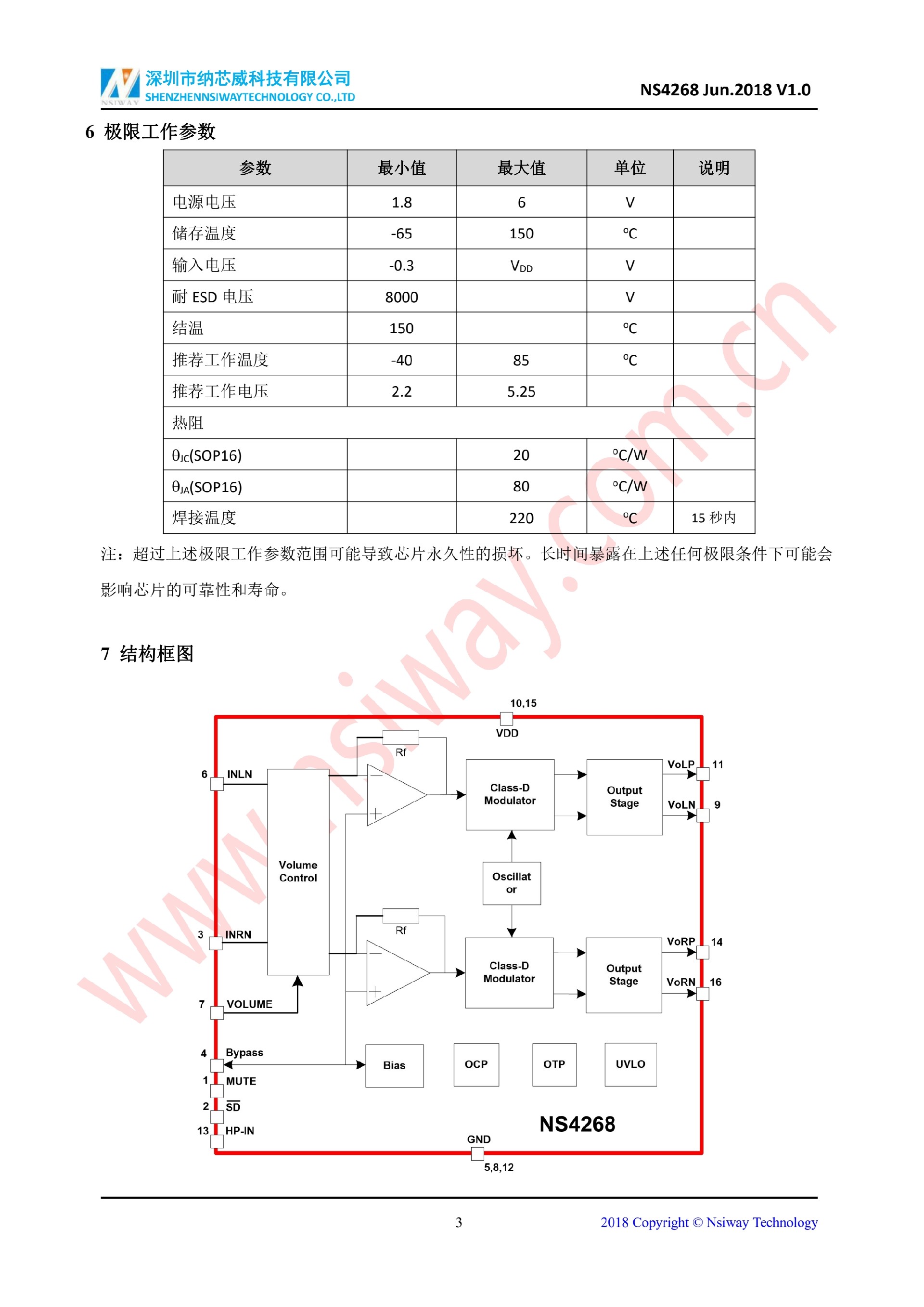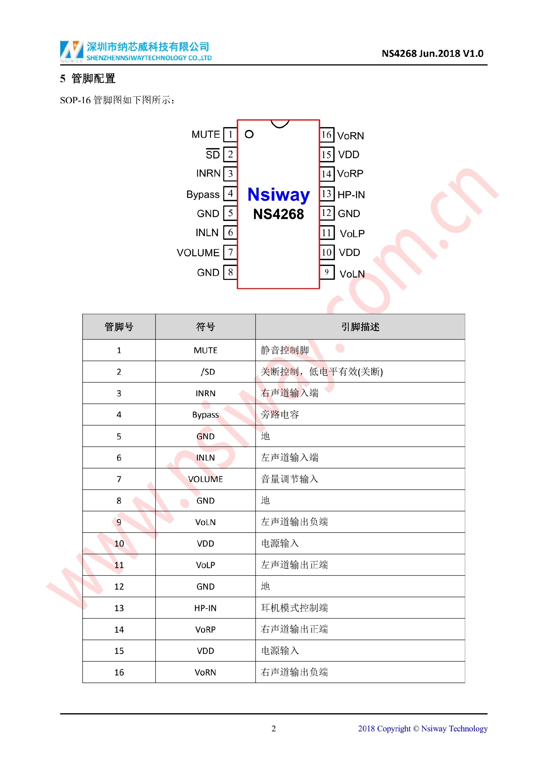NS4268 3W×2 雙聲道D類音頻功率放大器附加耳機功能及DC音量控制(SOP-16)