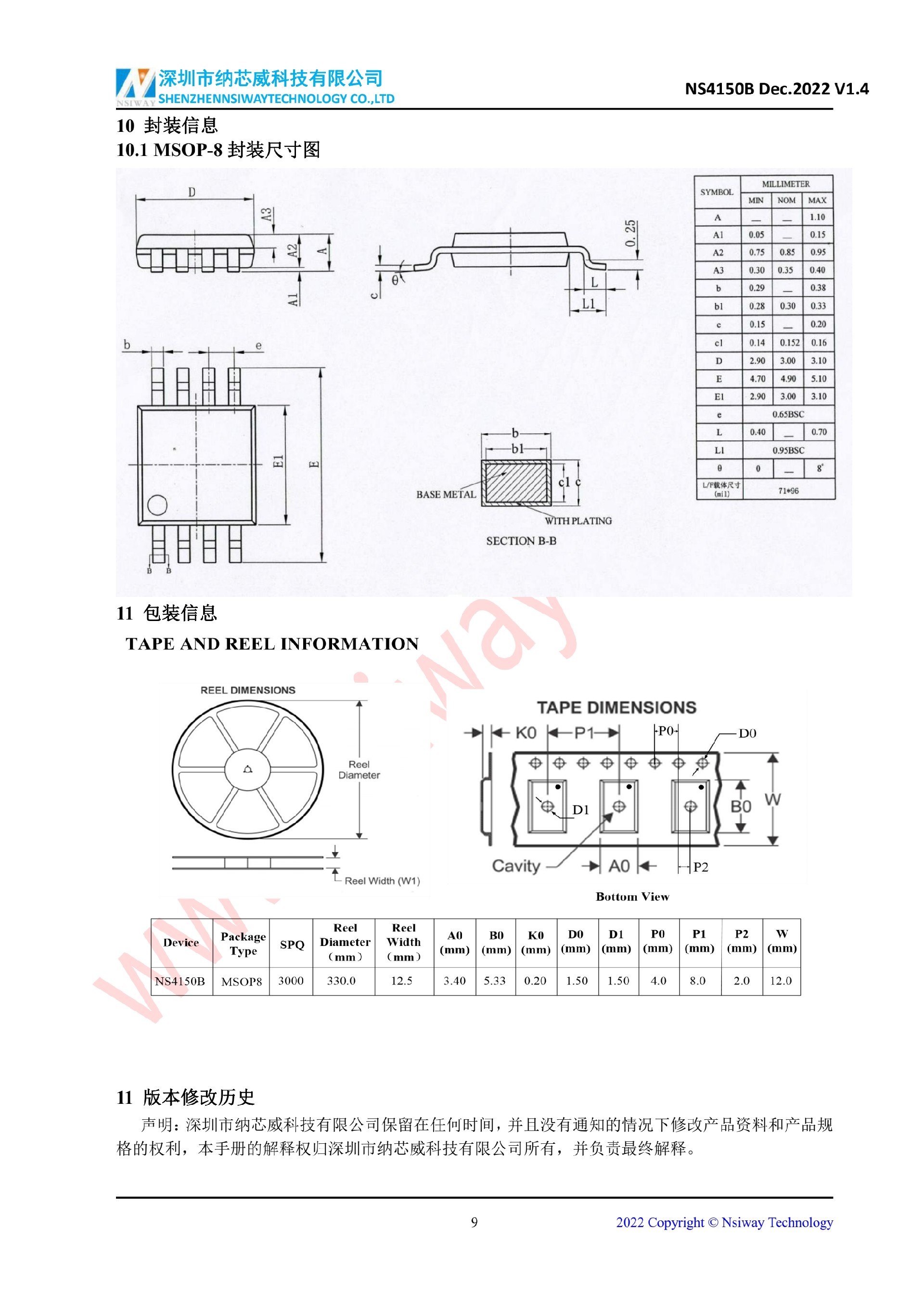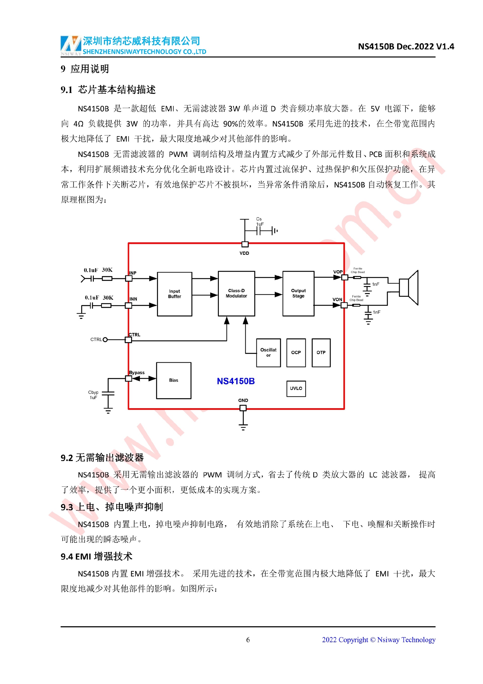 NS4150B 3W 單聲道D類音頻功率放大器(MSOP-8)